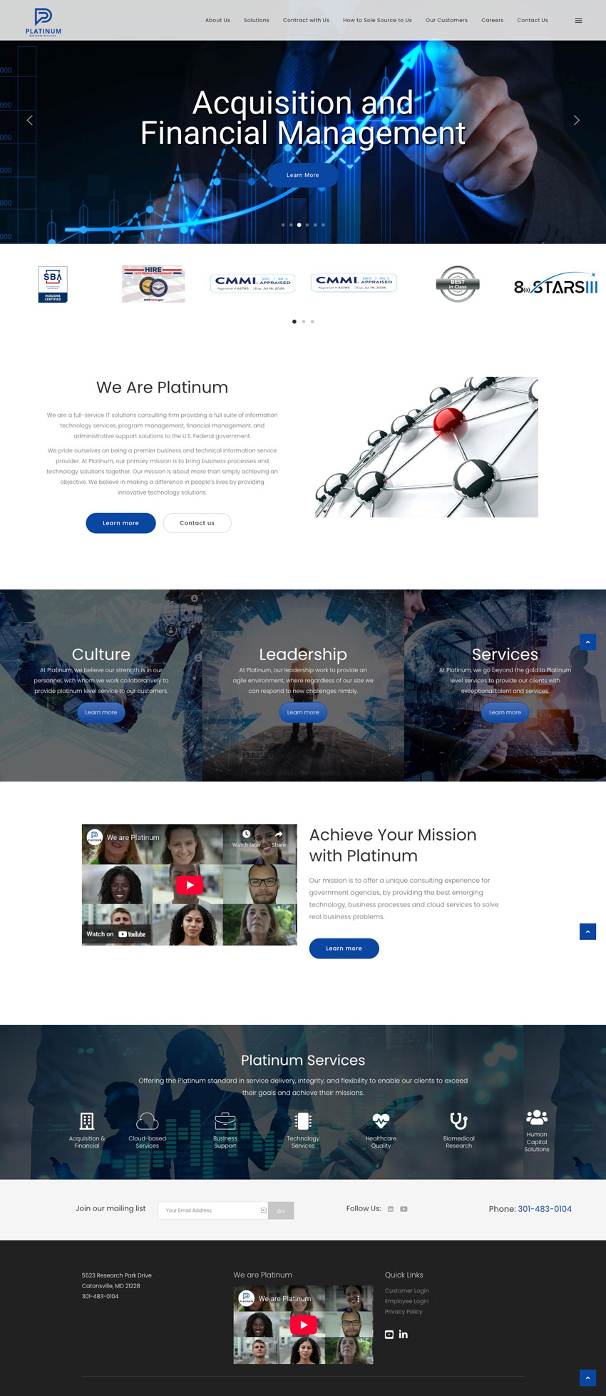 The Challenge: Platinum’s previous website no longer reflected the company’s current capabilities or professional stature. In the competitive government contracting world—where a website is a key part of the due diligence process for contract administrators—an outdated digital presence was a significant liability. They needed a modern, professional site that could clearly display critical public records and serve as an effective recruitment tool.